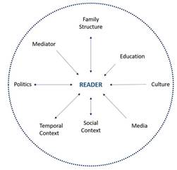 It must be pointed out, however, that this relation usually happens in different ways, creating a scenario where reader only receives influences of particular factors, as shown in Figure 2: