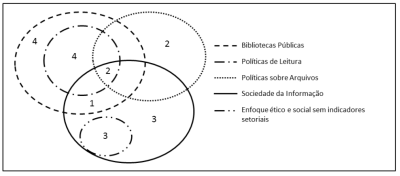Essas discussões encontram-se em sua maioria fragmentadas com tendência à perspectiva parcial do entorno das políticas públicas para biblioteca, políticas para a leitura, e políticas dos arquivos públicos. Dentro das publicações científicas analisadas há uma ampla discussão em torno do papel das bibliotecas públicas como agentes determinantes para o desenvolvimento da Sociedade da Informação.