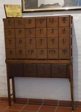 Desde el punto de vista de las ciencias de la información, los documentos oficiales de la congregación, al igual que el resto de materiales que conforman las colecciones del archivo presentan un muy buen estado de conservación, pese a que en sus primeros años la Secretaría de la Casa General de la congregación tuvo un carácter itinerante: Dabeiba, San Pedro, Santa Fe y, por último, Medellín, desde 1939. En este sentido, y como parte del interés por documentar y archivar todas las actividades personales de las misioneras y de las fundaciones que se crearon a lo largo del tiempo, el archivo conserva los diarios de las casas misioneras que iba estableciendo, los libros de actas y el recuento de las excursiones que realizaban integrantes de la comunidad. También se conservan más de dos mil cartas de carácter oficial dirigidas a personajes de la Iglesia o del Gobierno, las cuales eran reproducidas fielmente por una de las hermanas, que fungía de secretaria-copista, y que revelan muchos de los procesos legales, jurídicos y eclesiásticos emprendidos por la madre Laura para obtener los permisos para su trabajo misional, educativo y religioso. Una evidencia de la importancia de la correspondencia para la madre Laura se conserva en el montaje expositivo realizado por la comunidad, donde podemos apreciar no solo la habitación que la misionera ocupó en los últimos años de su vida, sino el archivador en el que guardaba con celo todas las cartas recibidas (ver Figuras 1 y 2).