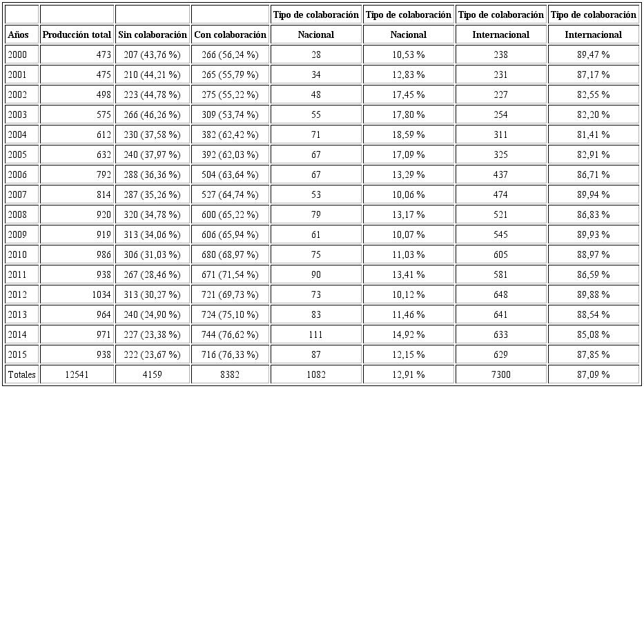 Por otra parte, su tasa de colaboración y su orientación internacional han ido en aumento, lo que tiende a fortalecer la visibilidad de la investigación y contribuye a mejorar su calidad con la participación de grupos de investigadores de diversas procedencias.