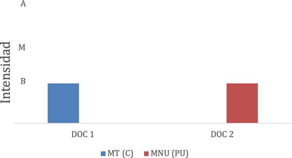 Así mismo, al observar el sentido de la unidad de registro, dos documentos abordan la categoría MT, y se obtiene en ambos casos un tratamiento con nivel de intensidad bajo. Se trata de los documentos Guía de datos abiertos en Colombia (Gobierno de Colombia, 2016a) y Guía para la estandarización de datos abiertos (Gobierno de Colombia, 2016b).