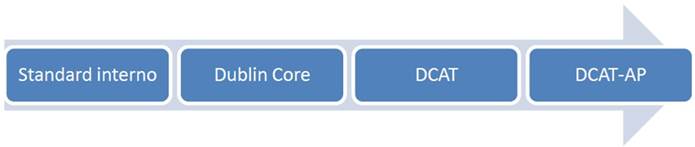 En el documento está descrita cada fase con características, ventajas e inconvenientes. Se observa la inclusión del modelo de datos DCAT como opción para la representación de conjuntos de datos de gobierno. A pesar de esa indicación precisa, no se observa ninguna descripción del modelo, entidades, relaciones o cardinalidades que ofrezcan algún detalle al usuario publicador.
