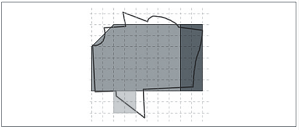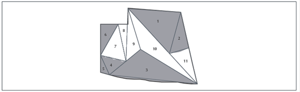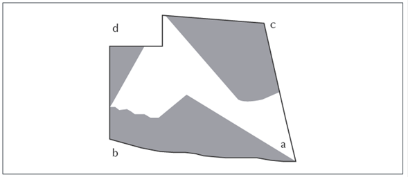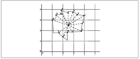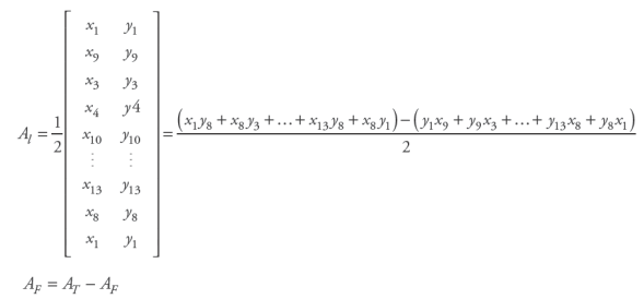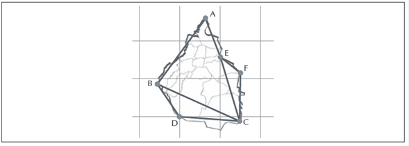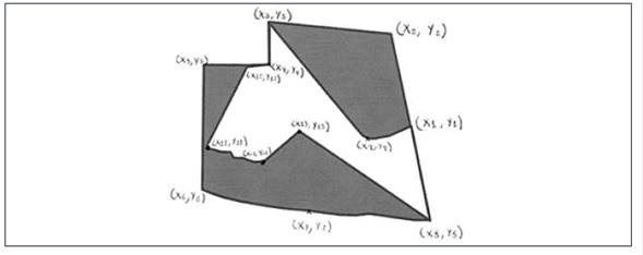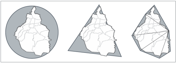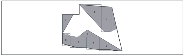 Esta técnica puede reconocerse como matemática y topográfica, ya que se circunscribe a la figura, polígonos que permitan “encerrarla” de la mejor manera, como se propone en P2. Esto permite en un segundo momento triangular y calcular el área.