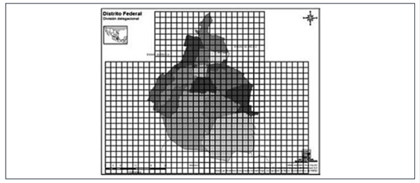[…] del conteo resultan 297 unidades de 4 km2, esto es, un total de 297 × 4 = 1 188 km2. Al final, el método tuvo sus deficiencias, puesto que el área de la Ciudad de México, según diversas fuentes, fluctúa entre 1 485 y 1 499 km2. (Extracto de reporte de César, p. 5)