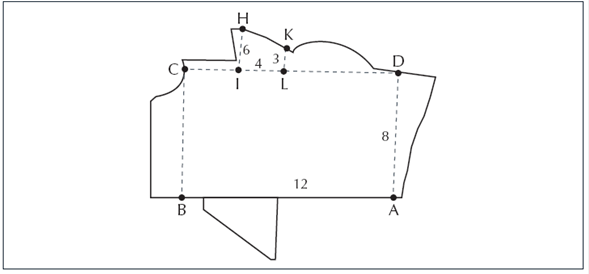 Situar el punto A (Figura 3), traza una línea al punto B y coloca una señal. Desde el punto B al punto C levanta una recta que forme un ángulo recto con AB y pon señales en cada uno. Luego, sitúate en el punto C y haz una línea al punto D y desde el punto D, una al punto A. De manera que, al final tengas un paralelogramo donde los lados menores tengan 8 y los lados mayores 12. Multiplica 8 por 12 y tendrás el área de la figura ABCD. Luego, para obtener lo demás haz en ellas cuadrados o paralelogramos o triángulos, la figura que quieras y sigue sus reglas. Para medir la figura IHKL, que por un lado tiene 3 cantidades, por otro 4, por otro 6 y por KH no se sabe qué cantidad. Pero, se puede encontrar el área. Suma 3 con 6 y será 9 toma la mitad (que es 4 y medio) y multiplícala por 4 y tendrás 18. Júntala con el área de la figura ABCD y de este modo irás midiendo las demás (Pérez de Moya 1573, p.85).