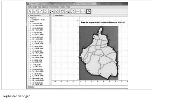 Dado que el software permite el trazo de polígonos con gran cantidad de lados, entonces “un polígono con mayor número de lados” asegura “mayor precisión en el cálculo del área”. Esto se ilustra particularmente bien en las técnicas presentadas por Alfonso y Julio César para el cálculo del área de la Ciudad de México. Alfonso utilizó GeoGebra y obtuvo el valor del área. Julio César investigó en la red y ubicó el software Free Tool Maps, en éste es posible pedir la representación del mapa de cualquier ciudad, por lo que él solicitó el de la Ciudad de México, luego insertó un polígono y obtuvo el valor del área con un error de 61 077 km2 con respecto al valor “real”. Aunque él explicita en su reporte que, si dibujaba polígonos con mayor número de lados, obtendría una mejor aproximación, no lo hizo. Un trabajo sobre este software permitió corroborar que efectivamente es posible hacer cálculos con mayores aproximaciones.