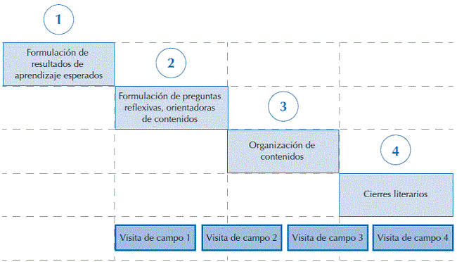 De acuerdo con el esquema mostrado en el Gráfico 1, la organización de los contenidos, orientados al tiempo presencial de los estudiantes en el aula, se conformó a través de cuatro componentes: