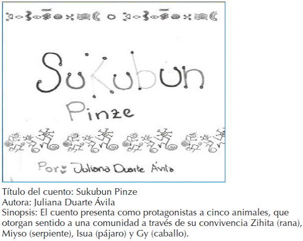 De la misma manera, se alcanza a percibir en los contenidos de estos cuentos, que los estudiantes buscaron, a través de sus textos e ilustraciones, llamar la atención sobre la valoración del lenguaje muisca y el significado que otorgan sus vocablos para comprender las formas de representación del mundo, la influencia de las tradiciones, las bondades de la trasmisión oral, el valor de los encuentros intergeneracionales, así como la necesidad de hacer propias las realidades de los indígenas, en tanto procedemos de ellos y cohabitamos los mismos territorios.