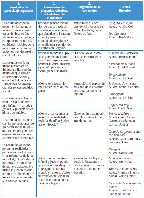 Esta experiencia pedagógica empleó la literatura infantil y juvenil como una mediación comunicativa en la forma de proyectar y representar la Colombia imaginada, entre jóvenes universitarios y una comunidad indígena que habita en una localidad de la capital del país; entendida aquella como un aporte a la construcción de paz, basada en el reconocimiento intercultural y apropiación de la historia de los pueblos, para la comprensión y transformación de sociedades que apuestan por la coexistencia y el bien común.
