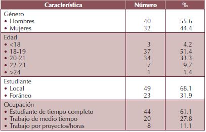 El número total de encuestas recibidas fue de 72, y dada la instrucción de validación que facilita el administrador Qualtrics se finalizaron adecuadamente todos los cuestionarios. La Tabla 1 muestra las características de la muestra.