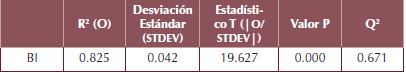 Los valores de R2 demuestran la calidad predictiva del modelo, los valores de 0.19, 0.33 y 0.67 son débiles, moderados y sustanciales respectivamente (Chin, 1998). La Tabla 4 muestra que el valor R2 de BI es 0.825 con un valor de p de 0.000 que muestra una calidad predictiva sustancial.