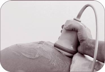 Cuando se realiza una ecografía, es necesario colocar gel sobre la piel donde se coloca el transductor, como muestra la Figura.