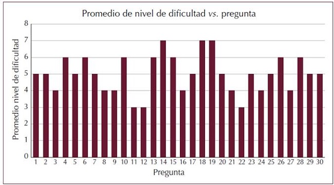 El promedio de dificultad de cada una de las preguntas asignados por los expertos se muestra en la Figura 1.