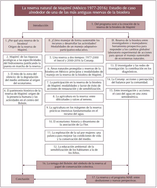 En resumen, se comenta que a mediados de la década de los setenta, la reserva de la biosfera de Mapimí se creó bajo el marco conceptual filosófico del hombre y la biosfera, que promueve la UNESCO, y donde actores como Gonzalo Halffter tuvieron una participación influyente en la estrategia de conservación de la biodiversidad en el continente, en el contexto de Latinoamérica y, en específico, de México. Dentro de esa modalidad de reserva de la biosfera, se destacó la visión integral que consideraba un entendimiento del funcionamiento de ecosistemas, la conservación de sus especies y en un sentido ecológico el aprovechamiento de sus recursos; además de que se consideraba la incorporación de la problemática socioeconómica local en aras de lograr un bienestar socio-natural duradero (Halftter, 1984).