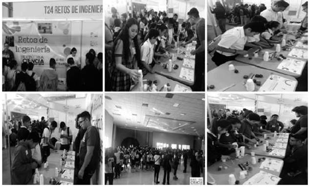 Retos de Ingeniería se presentó como taller en la primera Feria STEM+A: Explora Ciencia Tecnología + Arte 2017, realizada en Mexicali, Baja California en octubre de 2017. Fue organizada con el objetivo de incentivar el interés por el estudio de las ciencias, tecnología, ingeniería, matemáticas y las artes. Acudieron alrededor de 700 alumnos de educación básica, media superior y superior de instituciones tanto públicas como privadas, de la zona urbana y el Valle de Mexicali, como se ilustra en la Figura 4.