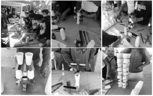 Como se ilustra en la Figura 5, los alumnos asistentes mostraron gran interés por la actividad. Crearon estructuras diversas e innovadoras utilizando su imaginación, creatividad, sensibilidad, organización, lógica y diseño. Trabajaron bajo las instrucciones señaladas y el tiempo permitido. Se sintieron estimulados por la competencia generada entre los equipos y buscaron realizar la actividad más de una ocasión.
