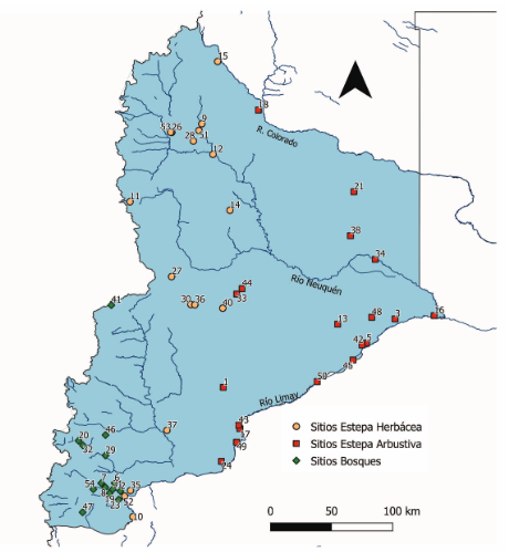 Es importante remarcar que gran parte del área este de Neuquén −que se encuentra localizada en la diagonal árida− adopta, desde un punto de vista hidrológico, características de desierto con bajas precipitaciones (Bruniard 1982; Abraham de Vázquez et al. 2000; Mancini et al. 2005). Hacia el oeste existe una alta disponibilidad de agua y recursos asociados en sectores localizados, aunque se trata de espacios sometidos a una alta estacionalidad y de muy dificultosa o imposible ocupación bajo condiciones invernales (Barberena et al. 2015b; Bernal et al. 2017). Estas condiciones ecológicas podrían haber favorecido el establecimiento temprano de sistemas de movilidad y explotación estacional de áreas cordilleranas a partir de sectores bajos ubicados hacia el este, de manera tal que pudo utilizarse la heterogeneidad en la disponibilidad de recursos temporal y espacial a lo largo del ciclo anual. Sin embargo, establecer en qué medida la ocupación estacional del espacio se mantuvo a lo largo del Holoceno requiere obtener reconstrucciones paleoambientales precisas a escala regional, las cuales son escasas para algunas áreas de Neuquén, como el norte de la provincia.