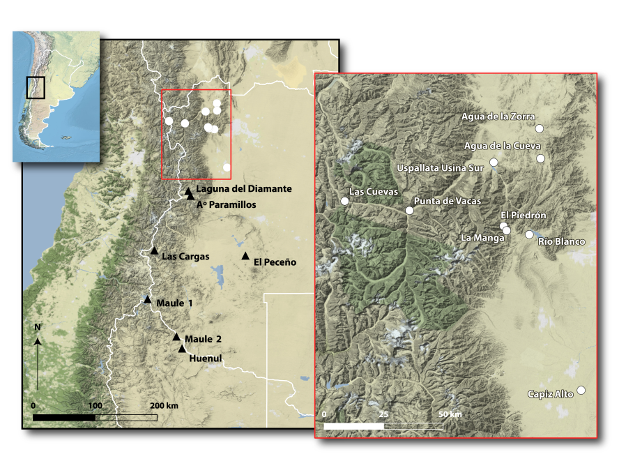 Finalmente, se incluyen en este trabajo dos sitios de carácter funerario. Uspallata Usina Sur es un enterratorio múltiple asociado al inicio del período incaico (ca. 500 años AP) (Marsh et al. 2017; Durán et al. 2018). El sitio originalmente excavado por Schobinger (1974-1976) contenía ofrendas de objetos de metal y de piedra alisada y tallada. El valioso conjunto de puntas de obsidiana intactas que integraban los ajuares ha sido objeto de estudios experimentales y geoquímicos previamente publicados (Nami et al. 2015). En la planicie del este de Mendoza se encuentra el sitio Capiz Alto, también con múltiples entierros humanos y contextos del período de contacto que incluyen materiales de origen europeo (ca. 450-400 años AP) (Novellino et al. 2003).