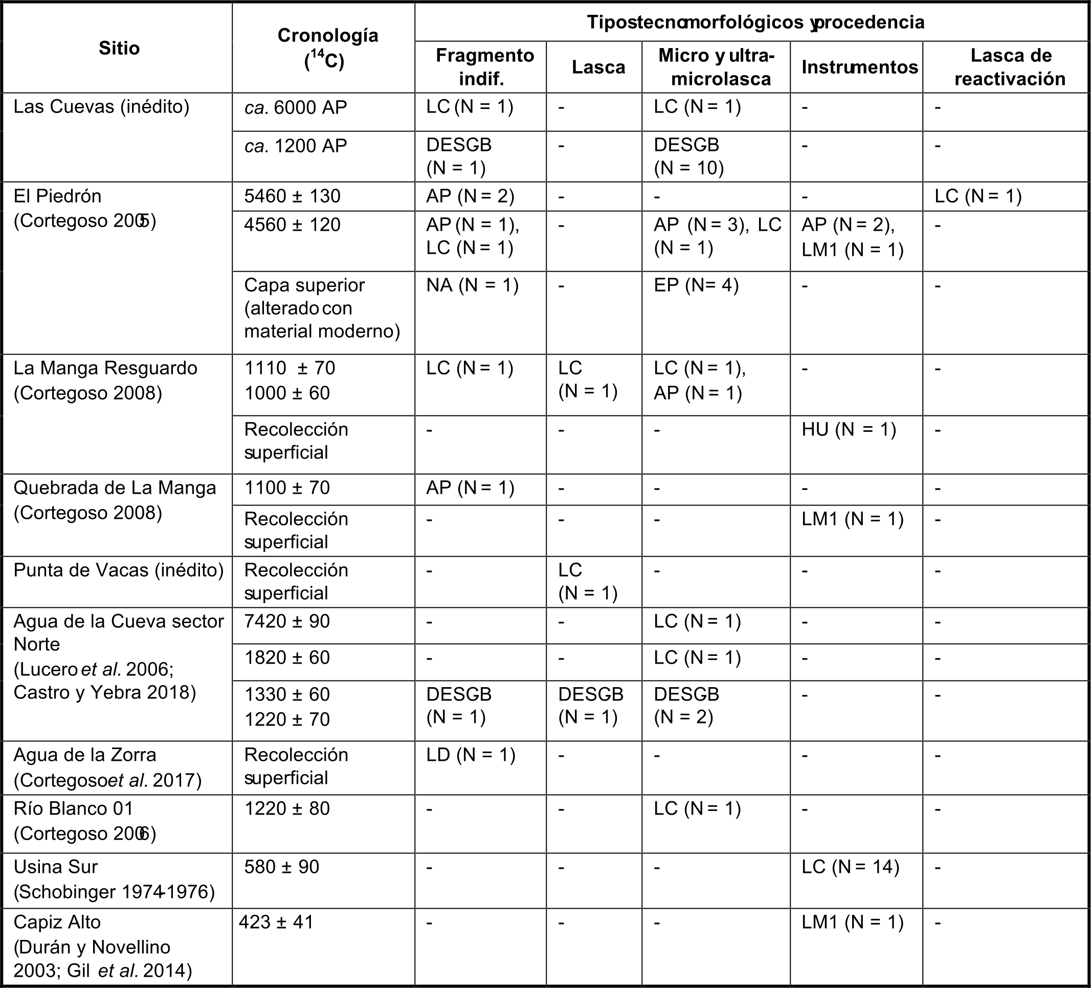 4.- El análisis de hidratación sobre productos de talla provenientes de Las Cargas permitió estimar una explotación continua pero con diferencias de intensidad entre 12.000-1800 años AP (Garvey et al. 2016).