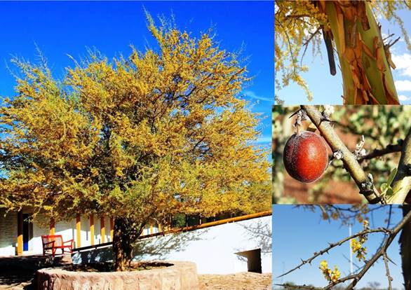 Geoffroea decorticans es un árbol pequeño a mediano (de 6 a 10 metros de altura), pionero en la sucesión y de amplia tolerancia al frío y la sequía. En Argentina, se distribuye principalmente en los pisos ecológicos chaco húmedo y semiárido, espinal, prepuna y yungas (Demaio et al., 2002). En la región chaqueña, también se observa la presencia de otra especie de su género, Geoffroea spinosa; ambas son las únicas representantes nativas del género en Sudamérica (Ireland y Pennington, 1999). Los frutos del chañar, de elevado valor nutricional (100 g/kg de proteína bruta [Orrabalis et al., 2013]), pueden consumirse frescos y/o secos, o también ser utilizados para la elaboración de harina, arrope y bebidas alcohólicas (Storni, 1942; Demaio et al., 2002; Calo, 2010); la corteza ha sido tradicionalmente utilizada con fines medicinales y/o tintóreos (Besio, 2017) y su madera es utilizada como leña (Demaio et al., 2002) (Figura 1).