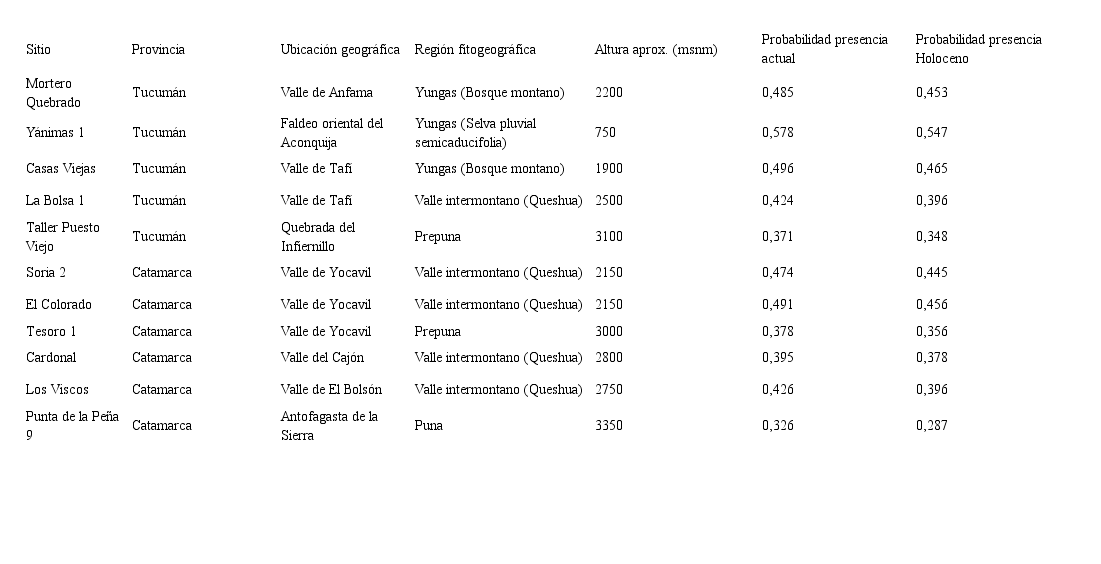 En el caso del modelado paleoclimático, se observa que, si bien el patrón de distribución de la especie pudo haber sido similar, la presencia habría sido menor durante el Holoceno tardío. En este sentido, la realización de analogías en base a la observación actual puede correr el riesgo de sobrerrepresentar la presencia pretérita de la especie.