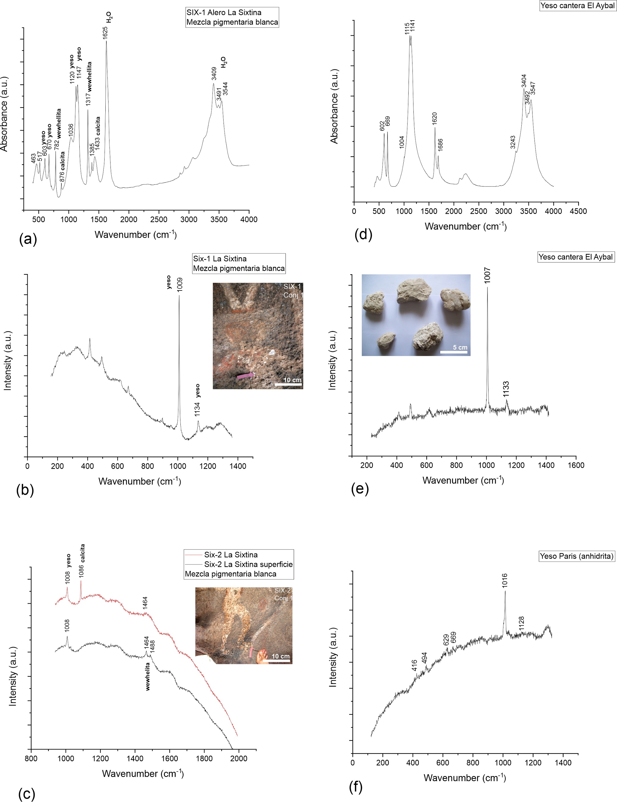 En el caso de las mezclas pigmentarias analizadas para el alero La Sixtina y la Cueva El Hornero de La Tunita, el yeso posee un doble rol: es considerado como pigmento (cromóforo) y al mismo tiempo como aglutinante conjuntamente con la calcita (Figura 3a, 3b y 3c) (Nazar et al., 2016).