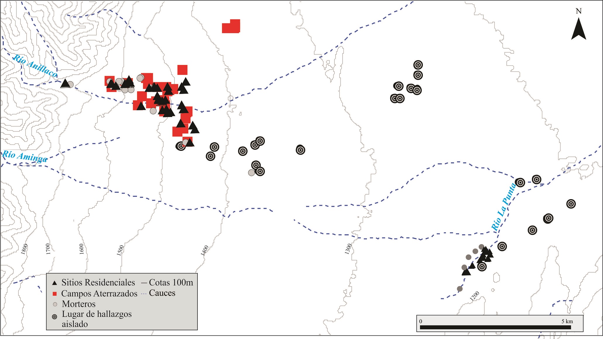 Proponemos en esta sección la modelización del paisaje de Anillaco con el objeto de reconocer las diferentes lógicas ocupacionales y determinar los cambios y continuidades de las estructuras y redes de relaciones sociales.