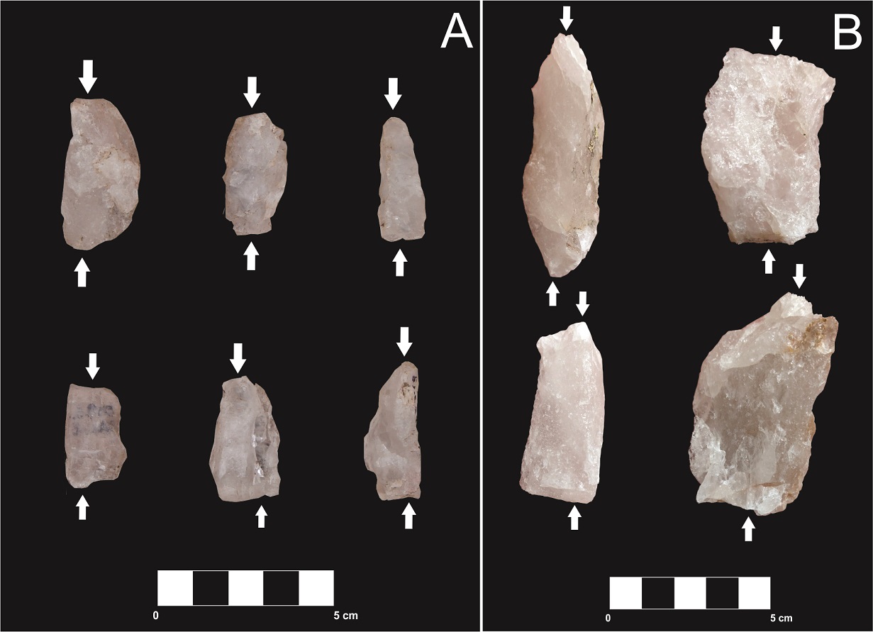 Más allá de estos aportes, no hay un claro acuerdo sobre los rasgos diagnósticos para diferenciar técnicas de reducción, sobre todo considerando las características del cuarzo utilizado en cada contexto. Por lo tanto, esta experiencia pretende sumar información y responder preguntas que surgieron del caso de estudio específico, pero asumiendo su potencial aporte al conocimiento de las técnicas de percusión en cuarzo en otras investigaciones.