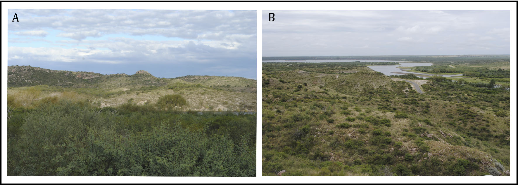 En una caracterización geológica inicial del área se observa la presencia de serranías asociadas a una red de drenaje efímera y valles. Se distingue una planicie loessoide con sectores con un pronunciado carcavamiento (Figura 2). En una zona transicional entre ambas unidades geomorfológicas, se emplaza la planicie loessoide ondulada con la presencia de arroyos efímeros y someros o cárcavas con variado grado de evolución (González Díaz, 1981; J. Aranda comunicación personal, 2021).