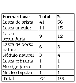 El estudio tecnológico permitió observar que en la cantera-taller se llevó a cabo la reducción de núcleos e instrumentos con filos simples. Se observa una producción lítica con una baja inversión de trabajo, además de un posible uso de algunos artefactos confeccionados sobre calcedonia. En el sitio se formatizaron instrumentos diversos, mediante una variedad de técnicas (microrretoque y retoques, marginales y unifaciales), sobre diferentes soportes como nódulos naturales y núcleos, además de lascas internas y externas, que se corresponden con la morfología de los productos de talla. Se observa en la cara ventral de algunas lascas el desarrollo de conos hertzianos prácticamente completos, que, sumados a la identificación de talones lisos, parece indicar el desarrollo de una técnica de percusión directa o por apoyo con un percutor duro (Valverde, 2004).