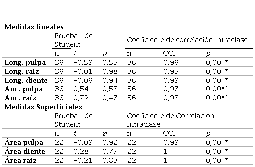 Los resultados estadísticos evidenciaron un elevado grado de reproductibilidad y confiabilidad de las variables analizadas. Estos son expuestos en detalle en la Tabla 3.