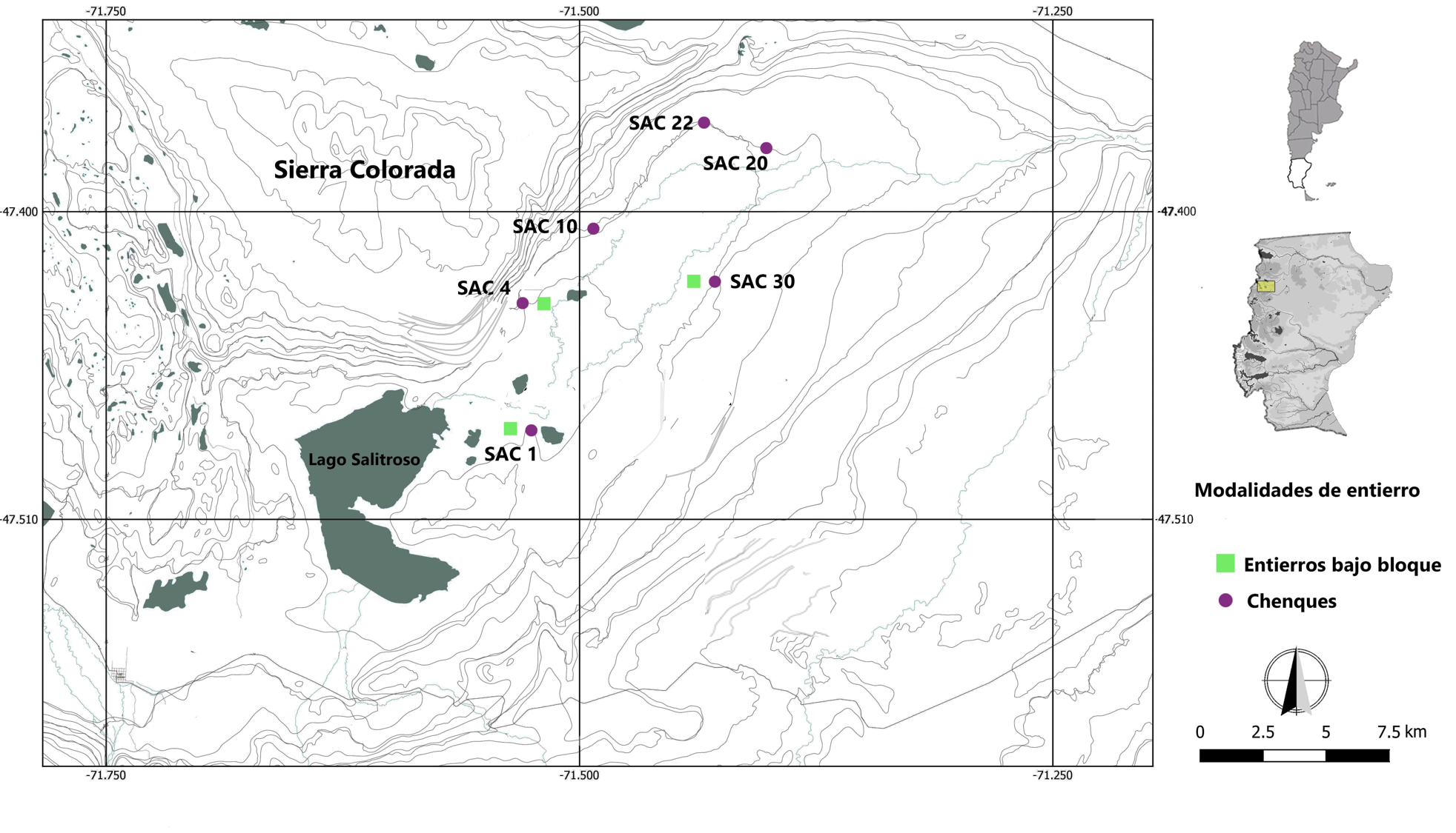 La cuenca del lago Salitroso se localiza en el departamento de Río Chico, al noroeste de la provincia de Santa Cruz (Figura 1). Arqueológicamente se destaca por la abundancia y concentración de estructuras funerarias de grupos cazadores-recolectores del Holoceno tardío (Goñi et al., 2000-2002; García Guraieb, 2010; García Guraieb et al., 2015).