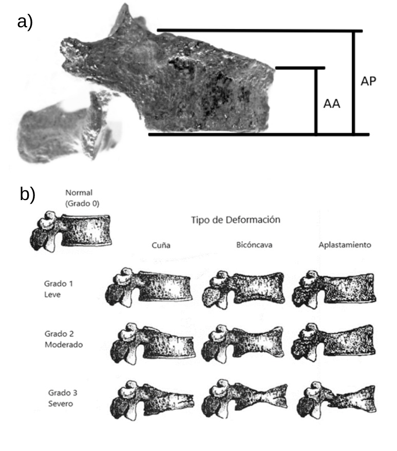 Los cuerpos vertebrales en el Homo sapiens resisten las fuerzas compresivas descendentes a lo largo del eje axial de la columna vertebral, producidas por la gravedad y las tensiones generadas por los músculos del abdomen y la espalda como consecuencia del bipedalismo (Dolan et al., 1994; Adams y Dolan, 2011). La capacidad para soportar esas cargas está fuertemente vinculada con la edad, el sexo, la postura, la presencia de otras patologías, así como la historia de fracturas previas y de actividad física (Adams y Dolan, 2011). Cuando las sobrecargas mecánicas sobre el eje axial exceden esa capacidad, pueden ocasionar fracturas compresivas, definidas como la pérdida de la altura de alguna porción del cuerpo vertebral (Eastell et al., 1991).