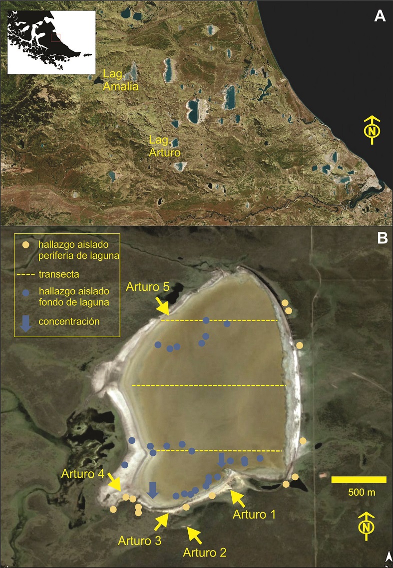 En este contexto, los estudios desarrollados en laguna Arturo, que reseñaremos a continuación, han estado enfocados en los contextos arqueológicos, en los procesos de formación de sitio y en las alteraciones sobre los materiales. En laguna Amalia se observaron y registraron procesos erosivos y acumulativos en su periferia. La laguna Arturo, al sumar casos de interés para evaluar la dinámica en los fondos, genera datos para una completa descripción de este modo tafonómico lagunar y, a su vez, amplía las interpretaciones sobre el uso integral de este tipo de espacios por parte de los grupos humanos en el pasado.