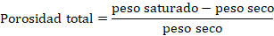 Las muestras de hueso sobre las que se realizó el cálculo de la porosidad son fragmentos con pesos que van desde los 2 a los 9 g. Las siguientes ecuaciones fueron utilizadas para estimar cada uno de los parámetros de porosidad: