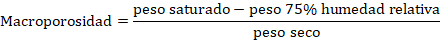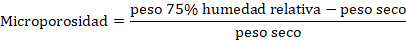 Para calcular el peso seco, las muestras fueron secadas en una mufla a 40. C por 48 horas para extraer toda su humedad, luego se pesaron tres veces y se calculó un promedio del peso seco de cada una. En el caso de los huesos modernos, las piezas fueron lavadas con acetona en ultrasonido para eliminar lípidos que pudieran afectar la medición de porosidad. Para obtener el peso al 75% de humedad relativa se introdujeron las muestras secas en la cabina, luego se creó una atmósfera de 75% de humedad y 20. C en su interior. Los huesos fueron dejados en estas condiciones durante cinco días, luego fueron pesados tres veces y se estimó un promedio del peso de cada uno. Por último, para obtener el peso de las piezas en atmósfera saturada de cada muestra, fueron nuevamente secadas en la mufla por 48 horas para extraer toda la humedad obtenida en la atmósfera al 75%. Luego, se introdujeron en la cabina y se creó una atmósfera al 99% de humedad y 20. C en su interior. Las muestras fueron dejadas durante cinco días bajo estas condiciones, luego se pesaron tres veces y se calculó un promedio de peso al 99% de humedad en cada una.