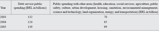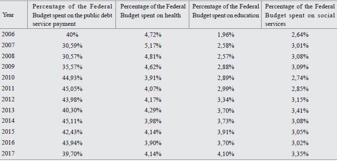 The same policy that privileges public debt service payment and tax adjustment are identified in Table 2, showing data from the period 2006-2017.