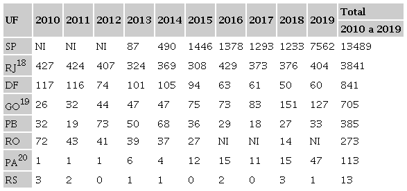 Somente os dados do Distrito Federal, entretanto, demonstraram a dificuldade de acesso a informações básicas sobre o tratamento institucional dado a esses indivíduos. O que desencadeou a curiosidade analítica do alargamento da pesquisa para todo o território nacional.