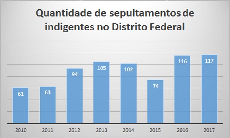 A primeira resposta quanto aos dados sociográficos também foi pela negativa de existência desses elementos, sendo enviado os dados brutos quanto ao número de sepultamentos de pessoas dadas como indigentes, no período de 2010 a 20175.