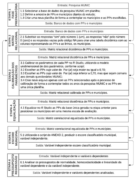 Após a produção do escore classificatório municipal, foi aplicada a análise de regressão simples para analisar o grau de correlação estatística entre as variáveis.