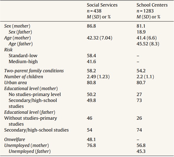This result may be due to that families of schools are coming from standard contexts, with higher level of education and employment, than families of social services and therefore its situation presents less variability.