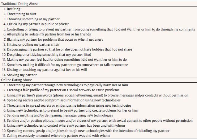 Borrajo, E., Gámez-Guadix, M., Pereda, N., & Calvete, E. (2015). The development and validation of the cyber dating abuse questionnaire among young couples. Computers in Human Behavior, 48, 358-365. https://doi.org/10.1016/j.chb.2015.01.063