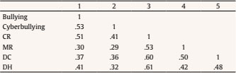 Bivariate correlations showed a significant and direct association between the variables of bullying and cyberbullying and all the dimensions of moral disengagement. The correlations ranged from r = .29 to .51 (see Table 2). Within mechanisms, intercorrelations ranged from .42 to .61.