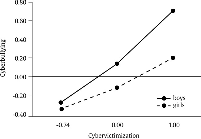 Prior studies have found that victimized girls find in SNSs a space for immediate peer support, such as advice and information on how to deal with these painful experiences (Mariën et al., 2021), which seem to contribute to a greater vulnerability to problematic use of virtual social networks, in addition to the sense of immediacy provided by SNSs and the possibility of communicating with their peers in this uninterrupted space and time (Mariën et al., 2021). Other studies have also demonstrated that empathy and pro-sociability are the main assets of girls’ virtual status and reputation (Fondevila et al., 2020; González & Maroto, 2018), which could explain why they tend to avoid aggressive behavior when victimized. These findings could also be linked to differential Internet use in girls and boys. It has been observed that girls were more cybervictimized through SNSs, and boys through online games (Gianesini & Brighi, 2015). Future research should explore whether problematic use of online games, more present in boys than in girls, is a mediating variable between both cybervictimization and offline victimization and cyberbullying.