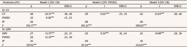The first aim of the study was to examine the mediating role of PSNSU in the relationship between both cybervictimization and offline peer victimization and cyberbullying. Results are presented in Table 2.