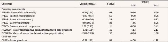 The parenting variables (maternal interactive behavior, parenting practices, and parental sense of competence) were the primary outcomes of the study, and the child behavior was the secondary one.
