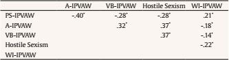Participants total scores in the PS-IPVAW scale were correlated to the A-IPVAW, VB-IPVAW, WI-IPVAW, and hostile sexism scales in the first two samples (Table 5). Results indicated that participants with higher levels of perceived severity also presented lower levels of acceptability, victim-blaming attitudes, and hostile sexism. We also found that participants who showed higher levels of perceived severity tend to present higher willingness to intervene in cases of IPVAW.