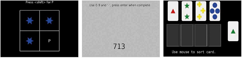 All participants completed three standardized EF assessment tests (i.e., Go/noGo, Forward/backward digit span, and Berg’s Card Sorting) in the lab during the pretraining and posttraining sessions, approximately 30 days apart. The three EF tests were implemented using the Psychology Experiment Building Language Test Battery-version 2 (Mueller & Piper, 2014; Piper et al., 2012).