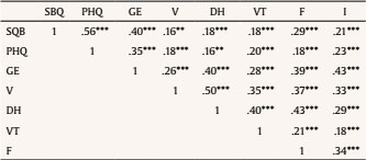 The Patients Health Questionnaire-9 (PQH-9; Spitzer et al., 1999) is a 9-item module from the full PHQ which scores each of the nine Diagnostic and Statistical Manual of Mental Disorders, fifth edition (DSM-5) criteria for depression. It is a Likert-type scale with 4 response options: 0 = not at all, 1 = several days, 2 = more than half the days, and 3 = nearly every day. As a severity measure, the PHQ-9 score can range from 0 to 27, where higher scores represent higher levels of depression experienced by the person in the last two weeks. The original version of the measure demonstrated good internal consistency reliability ( = .89; Spitzer et al., 1999), and good criterion validity (r = .84; Spitzer et al., 1999). The PHQ-9 has been validated in clinical and non-clinical samples from Spain (Marcos-Nájera et al., 2018; Muñoz-Navarro et al., 2017; Pinto-Meza et al., 2005) showing good internal consistency and convergent validity. A cutoff score of 10 or greater indicates major depression disorder in samples from Spain and has 84% sensitivity and 92% specificity. In the present study, the PQH-9 had good reliability data with Cronbachs alpha coefficients equivalent to .91 (95% CI [.90, .92]).
