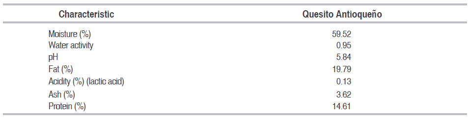 Characterization of fresh cheese (Quesito Antioqueño)